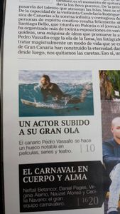 Pedro Vassallo es un actor polifacético, atlántico, volcánico y versátil. Nacido en Las Palmas de Gran Canaria un caluroso agosto de 1976 y procedente de una familia muy artística llena de músicos, escritores, escultores, poetas y pintores, terminó sus estudios en arte dramático en la universidad de Kent en Madrid (97-01). Posteriormente no ha dejado de formarse en diferentes ramas de la interpretación: teatro clásico, teatro de máscara, biomecánica, voz, canto, interpretación ante la cámara, esgrima, lucha escénica, etc. Ha desarrollado su carrera en el Cine, la Televisión y el Teatro. Actualmente reside en Madrid y es padre de tres hijos maravillosos.
